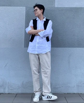 • Áo thun trắng + quần jeans xanh + giày sneaker: Set đồ đơn giản nhưng luôn trẻ trung, thoải mái.